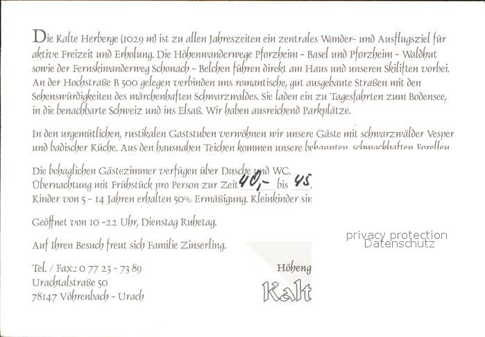 72577647 Urach Schwarzwald Hoehengasthaus Kalte Herberge im Sommer und Winter postalisch nicht gelaufen Werbekarte (keine Postkarte) Erhaltung siehe scans [FriedD77] KatCode: 11110008326068