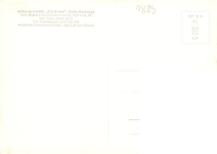 73931190 Urach Schwarzwald Hoehengaststaette Zur Krone Kalte Herberge postalisch nicht gelaufen Erhaltung siehe scans [WerneD78] KatCode: 11110008326068