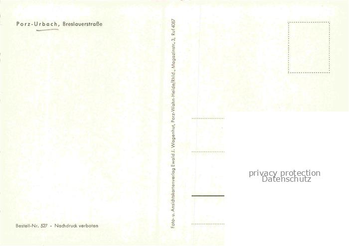 74106387 Urbach Porz KoeLN NRW Breslauerstrasse postalisch nicht gelaufen Erhaltung siehe scans [FriedD77] Frie Katcode 11110005315000