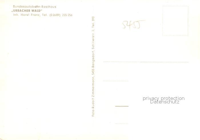 73871054 Urbach Westerwald BAB Rasthaus Urbacher Wald postalisch nicht gelaufen Erhaltung siehe scans [WerneD78] KatCode: 11110007138074