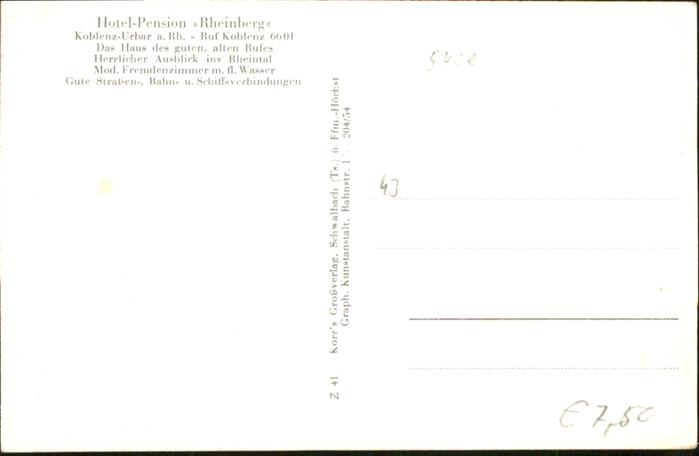 40927187 Urbar Koblenz Hotel Pension Rheinberg KatCode 11110007137224