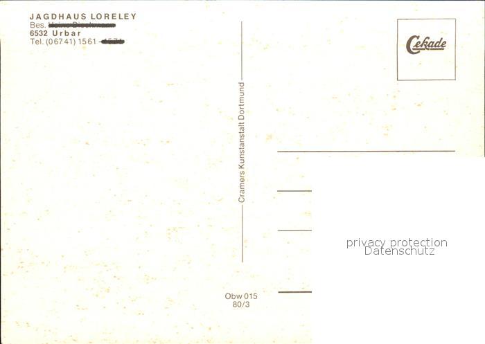 72590369 Urbar Rhein-Hunsrueck Jagdhaus Loreley postalisch nicht gelaufen Erhaltung siehe scans [AntonD74] KatCode: 11110007140155