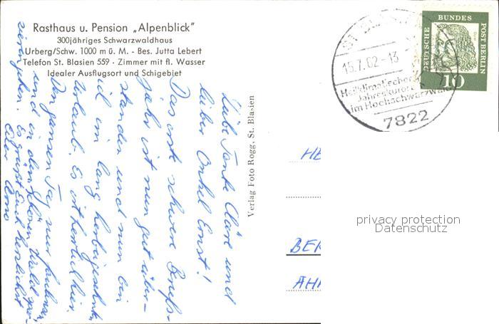 alte Postkarte Urberg Schwarzwalddiele Rasthaus Pension Alpenblick 300jaehriges Schwarzwaldhaus postalisch gelaufen Erhaltung siehe scans