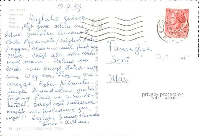 old postcard Urbino Ansicht postalisch gelaufen Erhaltung siehe scans