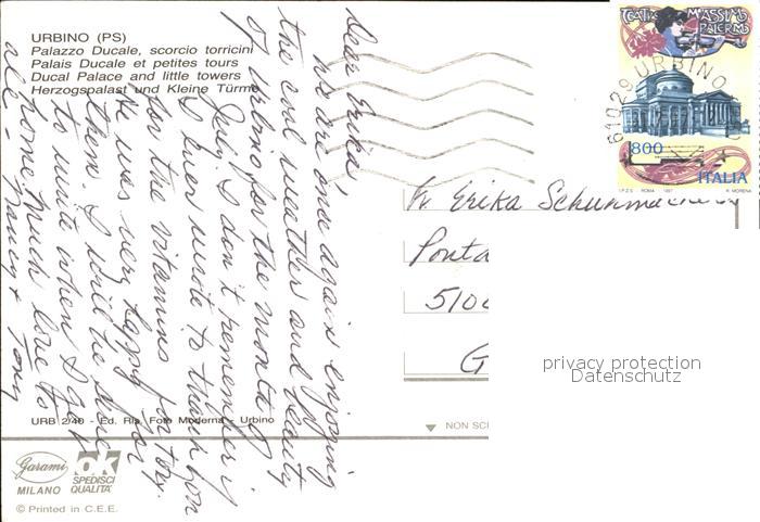 old postcard Urbino Palazzo Ducale postalisch gelaufen Erhaltung siehe scans