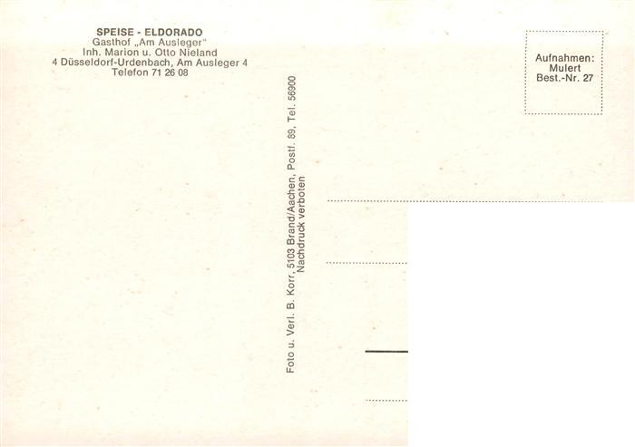 73878654 Urdenbach Duesseldorf Gasthof Am Ausleger Restaurant Terrasse postalisch nicht gelaufen Erhaltung siehe scans [FriedD77] KatCode: 11110005111000