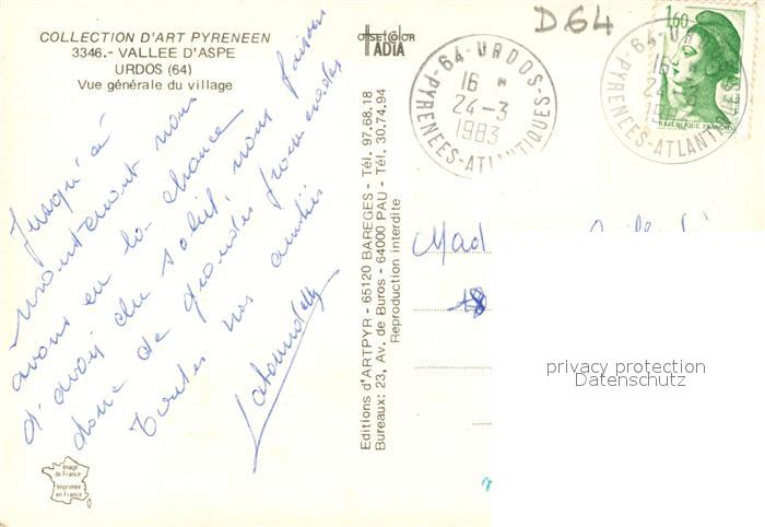 13585688 Urdos Vallee d Aspe postalisch gelaufen Erhaltung siehe scans [PaolaD17] carte postale Paol Katcode 11170064264542