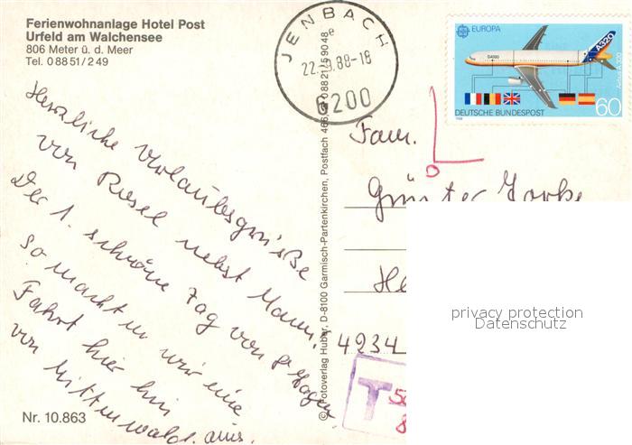 73645934 alte Postkarte Urfeld Walchensee Ferienwohnanlage Hotel Post postalisch gelaufen Erhaltung siehe scans [FriedD77] KatCode: 11110009173133