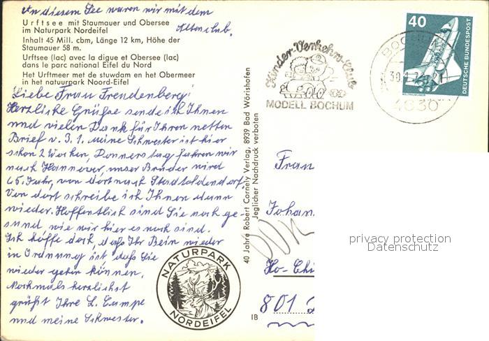 72372345 alte Postkarte Urfttalsperre Urftsee Staumauer Naturpark Nordeifel postalisch gelaufen Erhaltung siehe scans KatCode: 11110005366024