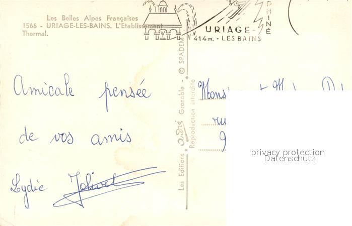 13578953 carte postale Uriage-les-Bains Isere Etablissement Thermal postalisch gelaufen Erhaltung siehe scans [FriedD77] KatCode: 11170038138529