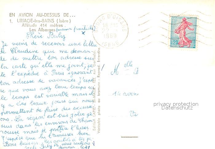 13593159 Uriage-les-Bains Isere Les Alberges vue aérienne postalisch gelaufen Erhaltung siehe scans [FriedD77] carte postale Frie Katcode 11170038138529
