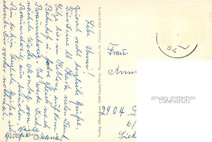 73659357 alte Postkarte Urmitz Rhein Uferpartie am Rhein Motorboot postalisch gelaufen Erhaltung siehe scans [FriedD77] KatCode: 11110007137225