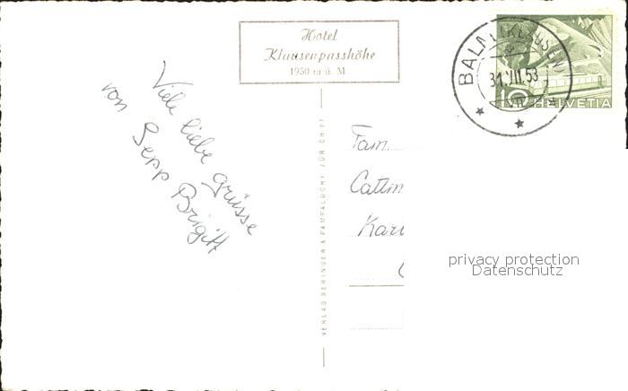 12344649 alte Postkarte Urnerboden mit Klausenpasshoehe postalisch gelaufen Erhaltung siehe scans KatCode: 11470220685224
