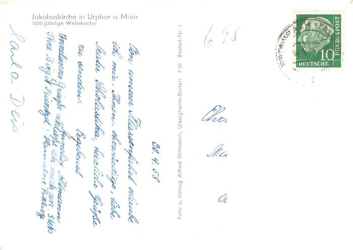 73879554 alte Postkarte Urphar Jakobuskirche Innenansicht 1000jaehrige Wehrkirche postalisch gelaufen Erhaltung siehe scans [FriedD77] KatCode: 11110008128131