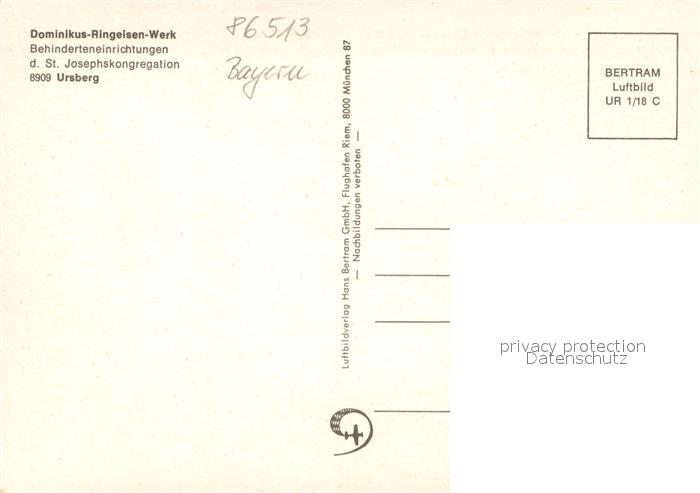 73667016 Ursberg Dominikus Ringeisen Werk Fliegeraufnahme postalisch nicht gelaufen Erhaltung siehe scans [WerneD78] KatCode: 11110009774116