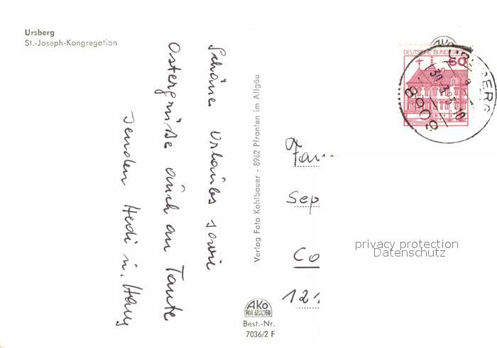 72821006 alte Postkarte Ursberg St Joseph Kongregation postalisch gelaufen Erhaltung siehe scans [FriedD77] KatCode: 11110009774116