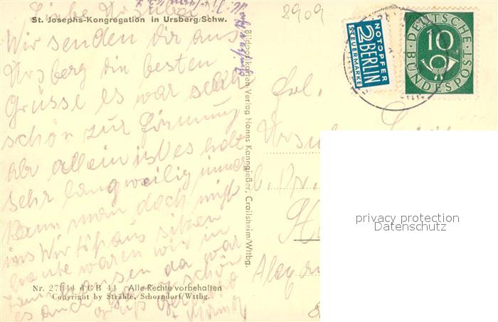 73710642 alte Postkarte Ursberg St Josephs Kongregation Fliegeraufnahme postalisch gelaufen Erhaltung siehe scans [WerneD78] KatCode: 11110009774116