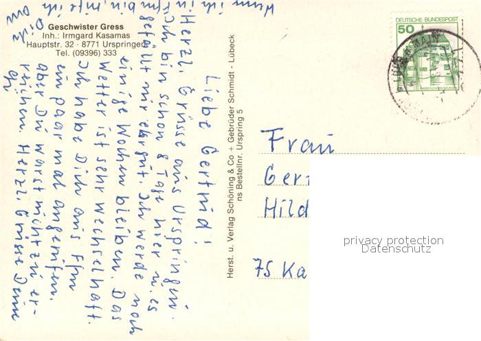 73672188 alte Postkarte Urspringen Marktheidenfeld Panorama Kirche Ladengeschaeft postalisch gelaufen Erhaltung siehe scans [FriedD77] KatCode: 11110009677193