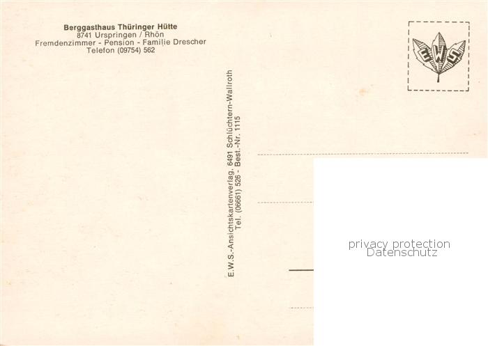 73845670 Urspringen Rhoen Berggasthaus Thueringer Huette postalisch nicht gelaufen Erhaltung siehe scans [FriedD77] KatCode: 11110009673153