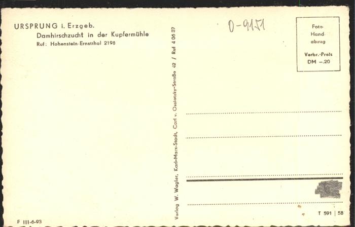 41259797 Ursprung Erzgebirge Damhirschzucht Kupfermühle KatCode 11110014188080