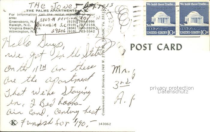 71859353 old postcard USA The Palms Apartements postalisch gelaufen Erhaltung siehe scans KatCode: 14140