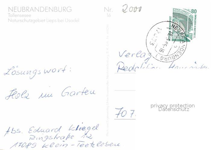 72640445 alte Postkarte Usadel Panorama Naturschutzgebiet Lieps Tollensesee postalisch gelaufen Erhaltung siehe scans [FriedD77] KatCode: 11110013055005