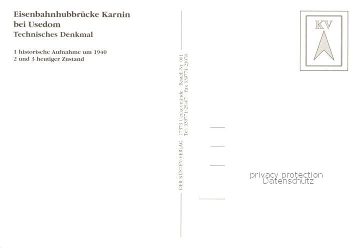 73009289 Usedom Eisenbahnhubbruecke Karnin Aufnahme von 1940 und heute postalisch nicht gelaufen Erhaltung siehe scans [WerneD78] KatCode: 11110013059097
