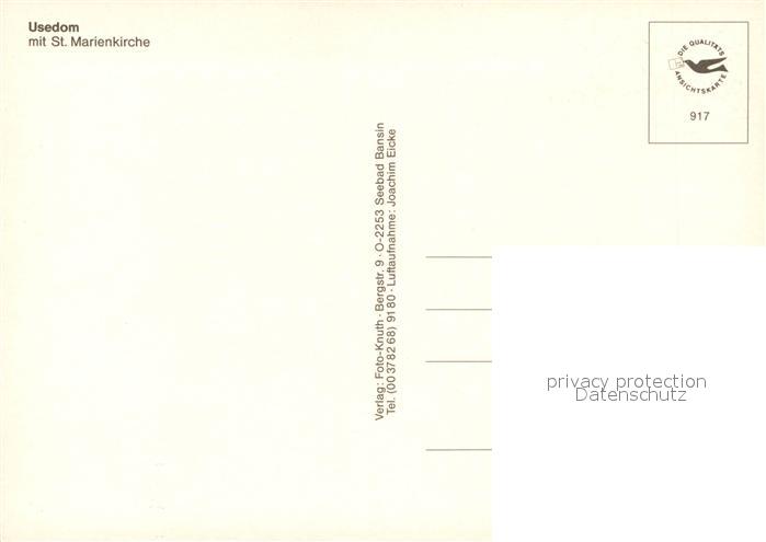 73165194 Usedom Fliegeraufnahme Panorama Sankt Marienkirche postalisch nicht gelaufen Erhaltung siehe scans [KathaD81] KatCode: 11110013059097