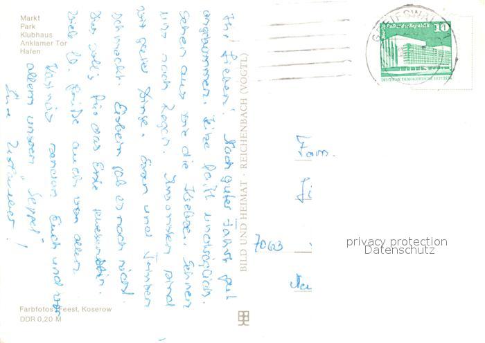 73088711 alte Postkarte Usedom Markt Park Klubhaus Anklamer Tor Hafen postalisch gelaufen Erhaltung siehe scans [KathaD81] KatCode: 11110013059097