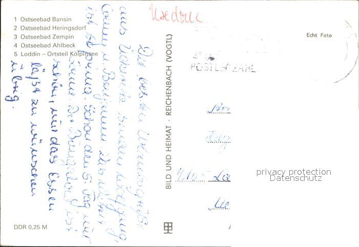 72367627 alte Postkarte Usedom Mecklenburg-Vorpommern Bansin Heringsdorf Zempin Ahlbeck Loddin-Koelpinsee postalisch gelaufen Erhaltung siehe scans KatCode: 11110013059097