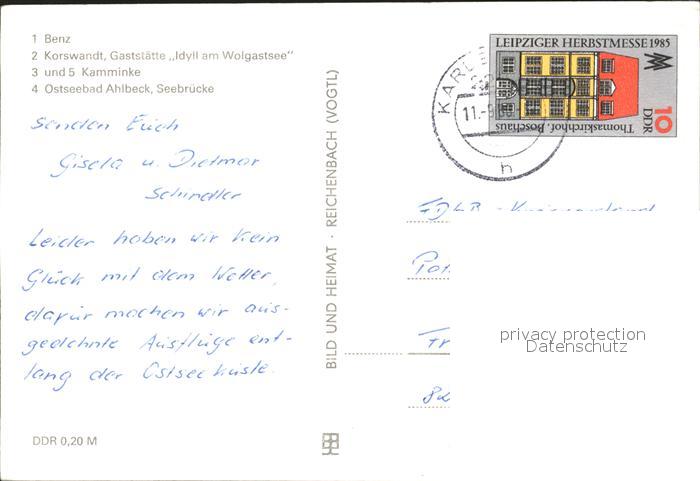 72366696 alte Postkarte Usedom Mecklenburg-Vorpommern Benz Korswandt Gaststaette Idyll am Wolgastsee Kamminke Ahlbeck Seebruecke postalisch gelaufen Erhaltung siehe scans KatCode: 11110013059097