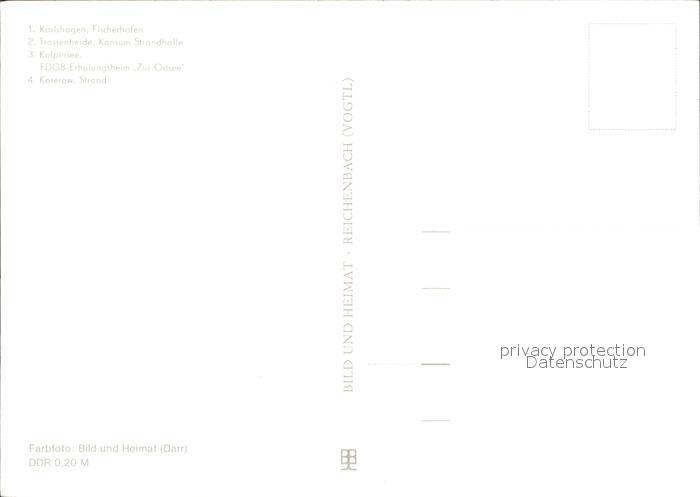 72326704 alte Postkarte Usedom Mecklenburg-Vorpommern Fischerhafen Trassenheide Konsum Strandhalle Koelpinsee FDGB Erholungsheim Zur Ostsee Koserow Strand postalisch gelaufen Erhaltung siehe scans KatCode: 11110013059097
