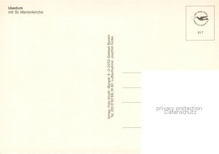 73726170 Usedom Mecklenburg-Vorpommern Fliegeraufnahme st. Marienkirche postalisch nicht gelaufen Erhaltung siehe scans [LiesaD40] Lies Katcode 11110013059097