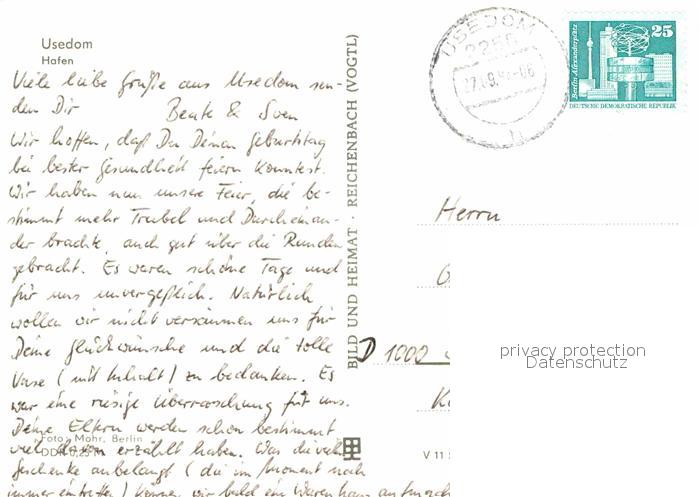 72710391 alte Postkarte Usedom Mecklenburg-Vorpommern Hafen postalisch gelaufen Erhaltung siehe scans [LiesaD40] KatCode: 11110013059097