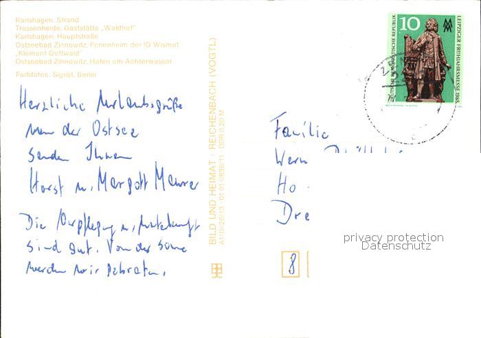 72406220 alte Postkarte Usedom Mecklenburg-Vorpommern Karlshagen Strand Hauptstrasse Trassenheide Gaststaette Waldhof Zinnowitz Ferienheim IG Wismut Hafen Achterwasser postalisch gelaufen Erhaltung siehe scans KatCode: 11110013059097