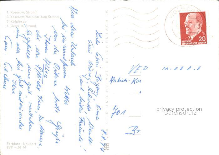 72103524 alte Postkarte Usedom Mecklenburg-Vorpommern Koserow Strand Koelpinsee uecheritz postalisch gelaufen Erhaltung siehe scans KatCode: 11110013059097