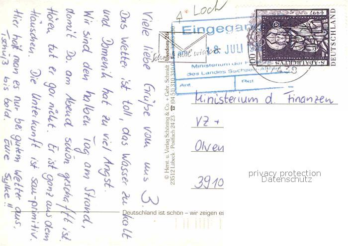 72723110 alte Postkarte Usedom Mecklenburg-Vorpommern Kueste Strand Landschaftspanorama Windmuehle Haeuser Statue Baumallee postalisch gelaufen Erhaltung siehe scans [FriedD77] KatCode: 11110013059097