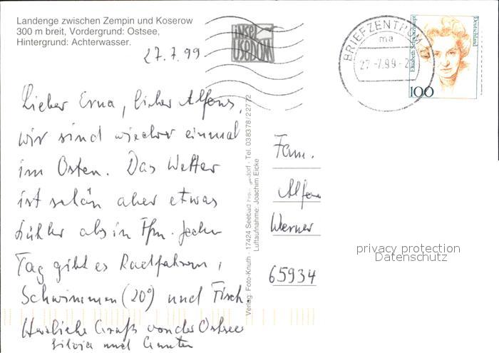 72457545 alte Postkarte Usedom Mecklenburg-Vorpommern Landenge Koserow Zempin Ostsee Achterwasser postalisch gelaufen Erhaltung siehe scans KatCode: 11110013059097