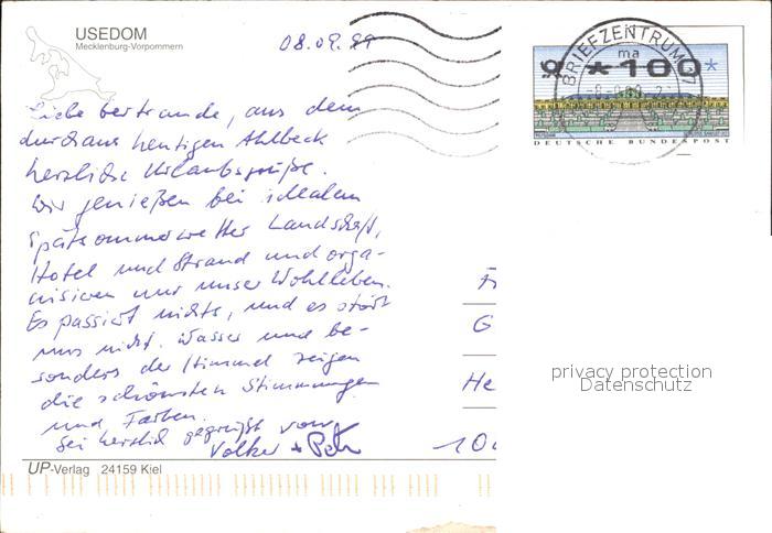 72580170 alte Postkarte Usedom Mecklenburg-Vorpommern Luftaufnahme Strand Ahlbeck Heringsdorf Bansin postalisch gelaufen Erhaltung siehe scans [KathaD79] KatCode: 11110013059097