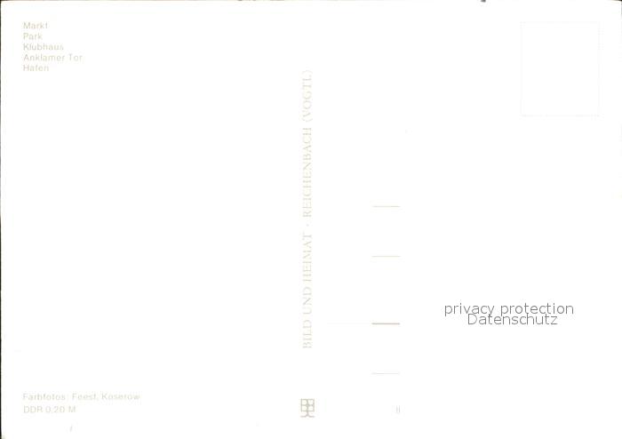 72338756 Usedom Mecklenburg-Vorpommern Markt Park Klubhaus Anklamer Tor Hafen postalisch nicht gelaufen Erhaltung siehe scans KatCode: 11110013059097