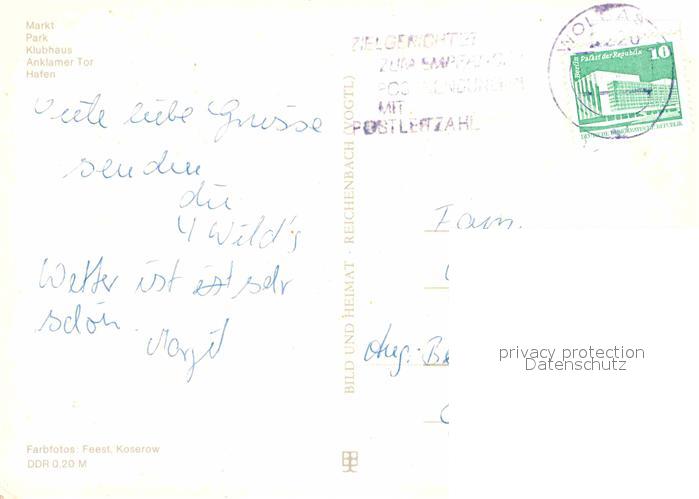 72851785 alte Postkarte Usedom Mecklenburg-Vorpommern Markt Park Klubhaus Anklamer Tor Hafen postalisch gelaufen Erhaltung siehe scans [AndreD76] KatCode: 11110013059097