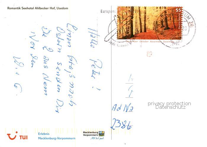 73829447 Usedom Mecklenburg-Vorpommern Romantik Seehotel Ahlbecker Hof Strand postalisch gelaufen Erhaltung siehe scans [FriedD77] alte Postkarte Frie Katcode 11110013059097