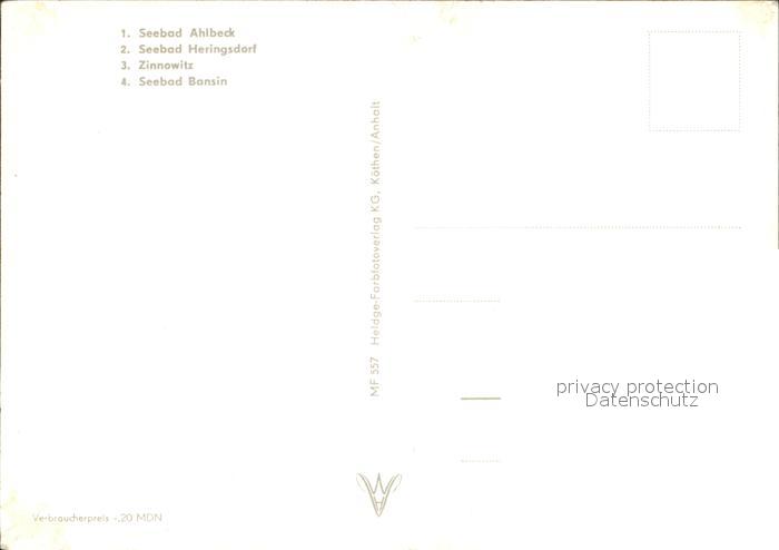 72326707 alte Postkarte Usedom Mecklenburg-Vorpommern Seebaeder Ahlbeck Heringsdorf Zinnowitz Bansin postalisch gelaufen Erhaltung siehe scans KatCode: 11110013059097