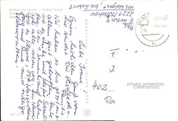72328349 alte Postkarte Usedom Mecklenburg-Vorpommern Seebaeder Heringsdorf Zinnowitz Ahlbeck Bansin Koserow postalisch gelaufen Erhaltung siehe scans KatCode: 11110013059097