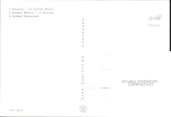 72368416 Usedom Mecklenburg-Vorpommern Zinnowitz Bansin Ahlbeck Koserow Heringsdorf postalisch nicht gelaufen Erhaltung siehe scans KatCode: 11110013059097