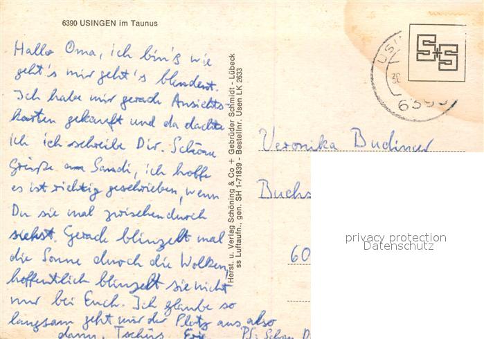 73170616 alte Postkarte Usingen Fliegeraufnahme postalisch gelaufen Erhaltung siehe scans [PaolaD17] KatCode: 11110006434011