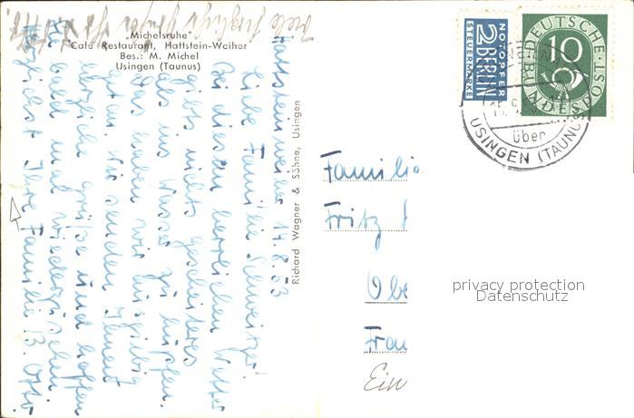 72096974 alte Postkarte Usingen Michelsruhe Cafe Restaurant Hattstein Weiher postalisch gelaufen Erhaltung siehe scans KatCode: 11110006434011