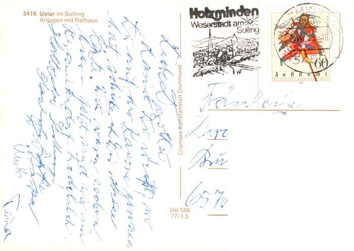 73937493 alte Postkarte Uslar Solling Anlagen mit Rathaus postalisch gelaufen Erhaltung siehe scans [WerneD78] KatCode: 11110003155012