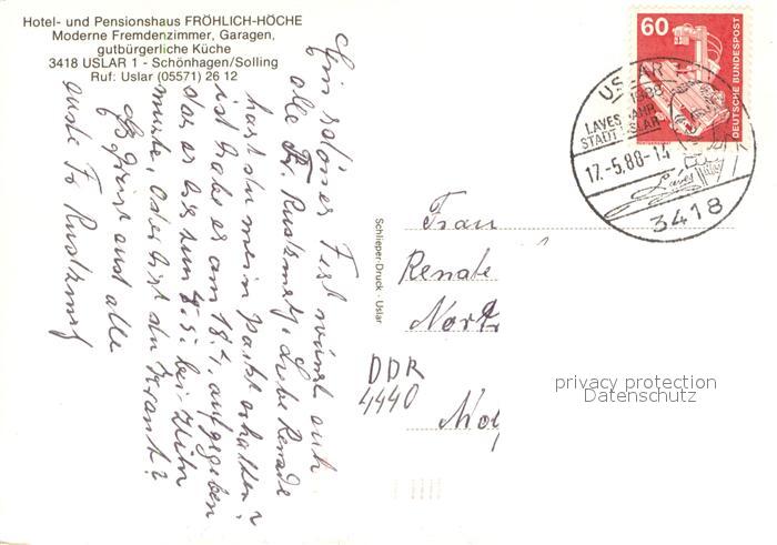73647935 alte Postkarte Uslar Solling Hotel Froehlich Hoeche Gaststube Terrasse Panorama postalisch gelaufen Erhaltung siehe scans [WerneD78] KatCode: 11110003155012