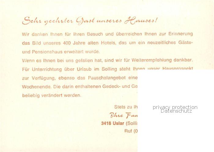 73858908 Uslar Solling Hotel Koerber postalisch nicht gelaufen Werbekarte (keine Postkarte) Erhaltung siehe scans [WerneD78] KatCode: 11110003155012